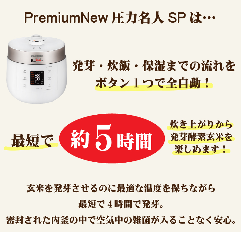 | 容量 | 【発芽酵素玄米・炊き込み】 4合-0.72L 【白米・白米早炊き・もちもち白米】6合-1.08L 【おかゆ】 1合-0.18L |